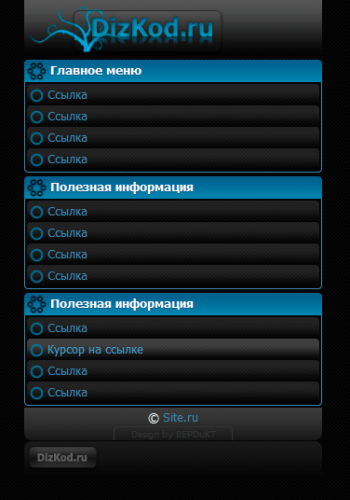 Wap дизайн исполненный в черно-синих цветах.