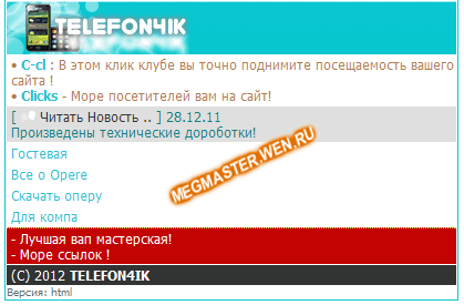 Примечание : не убирайте ссылку ведущую на наш сайт расположенную внизу страницы ... уважайте хоть чуть - чуть создателя