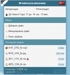 Описание: Кароч выкладываю .ded. Реализовано - Добавление файлов - Импорт файлов - Не большой личный кабинет screen (Позволяет не терять файлы и не забывать пароль) - Не большое управление файлами админу (Редактирование файла / удаление screen - Установка пароля загружающему - Вывод информации (время загрузки / сколько скачали) - Просмотр логов скачивания ( по мне дак не нужная функция но всё же screen - быстрый просмотр файла ( типа вывод картинки сразу или проигрывания музыки сразу screen ) - поиск - ну и мелочи всякие ( типа вывода сколько осталось до нового года) Дополнение - Не чего лишнего нет - Код простой - Начало было положено со strongcms - Пример LINK - Не дыр не щёлов нет Установка - Распаковывайте в корневую папку - идёте system/config.php и пропысывайте базу - заливаете таблицы flowap.sql - регаете нового пользователя и даёте ему level 3 через myadmin Всё вроде :D В файле registr.php удалите 94 строку или поменяйте на свою почту я прост тестировал и забыл убрать .данет.
