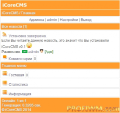 Первая версия ICore CMS. Пока что выглядит примитивно, но скоро будет в 100 раз лучше...