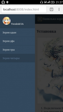 • Максимальный размер, считаемый мобилой (окно больше - панель открыта и находиться слева) • Ширина панели • % затемнения правой части • Скорость анимации • Вкл/Выкл смещения провой части • Вкл/Выкл запрета скроллинга