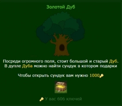 Описание: Простенький модуль "золотой дуб" Суть модуля В игре появляется золотой дуб в дупле которого сундук с подарками (монеты,рубины,опыт.) Чтобы открыть сундук вам нужно найти 1000 ключей. Ключи можно найти купив комбайн и при сборе урожая вы будете находить ключи. С каждым улучшением комбайна +1 ключ. (улучшив комбайн на 12ур вы будете находить 12 ключей) Помимо этого при покупке иконки вы получаете доп ключи которые увеличат находку ключей при сборе урожая. В архиве инструкция по установке в файле readmi.txt За помощью в лс.
