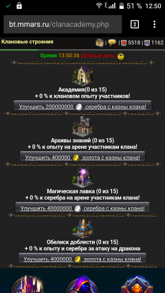 Описание: Клановые постройки! Суть мода: Участники клана могут прокачивать клановые постройки! Есть 4 постройки, каждая даёт бонус, Прокачивать могут все участники клана , права на лидера не ставил, кому нужно, в лс скину модуль с правами . Строго не судите , в php 3 месяца)