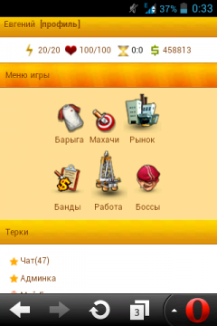 Описание: Онлайн игра Банда Доработанная версия вот этого скрипта Доработано: 1. Улучшение шмота 2. Банды (теперь в них можно отправлять заявки, одобрять их, появился общак, который можно тратить на улучшение банд) 3. Исправлена ошибка в подполе 4. Добавлены недостающие ревайты в .htaccess 5. Отредактировано ядро 6. Добавлены новые функции (для удобства)