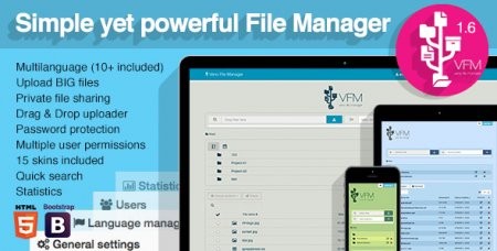 - Простота установки: просто скопируйте все файлы VFM к серверу, сделать свой первый логин и обновить пароль. Вот и все.