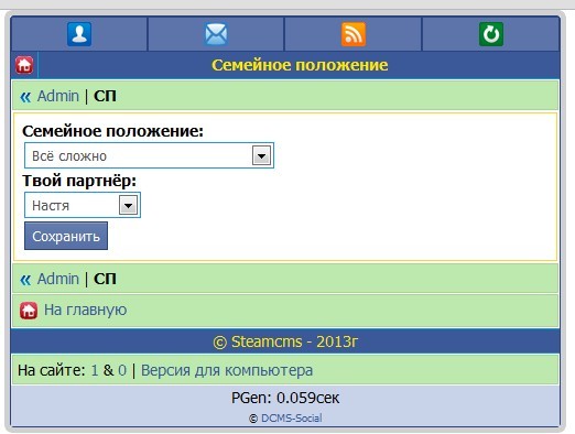 Семейное положение Dcms social
