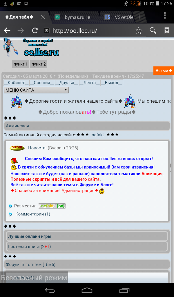 Пример сдесь http://oo.llee.ru (если я уже не добавил плюшек) Вроде всё. ___ Ждите следующих обнов!