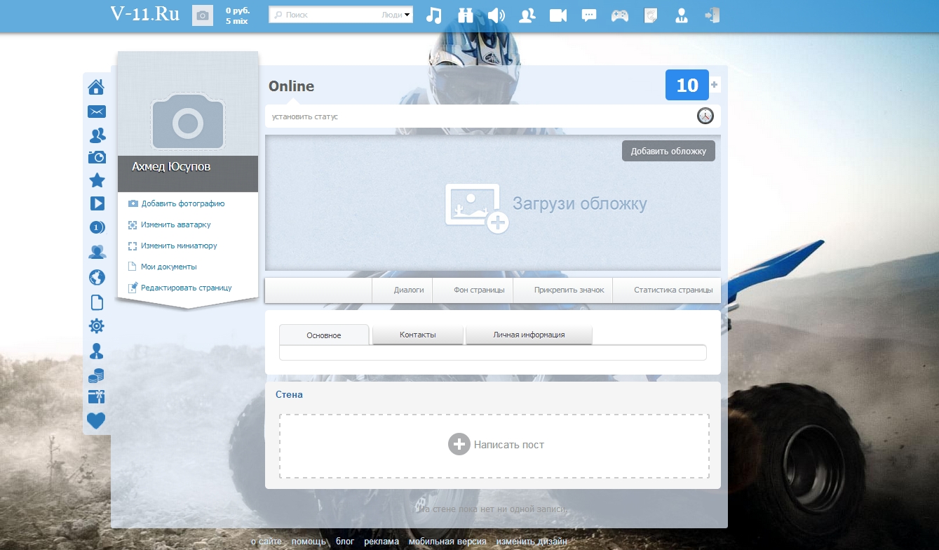 - Новая стена (добавление записей на стене)