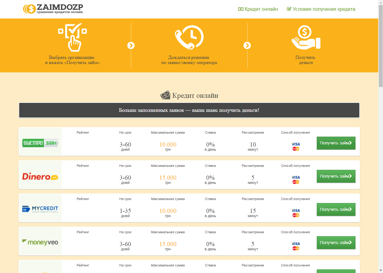 Сайт для работы с партнерками по выдаче микрозаймов и кредитов. Может кому пригодится!