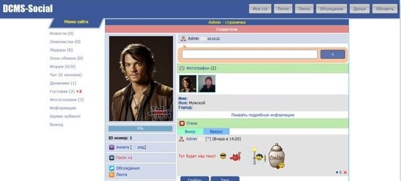 Скрипт социальной сети Dcms social ,нашёл у себя в архивах,кто поставит скиньте пример