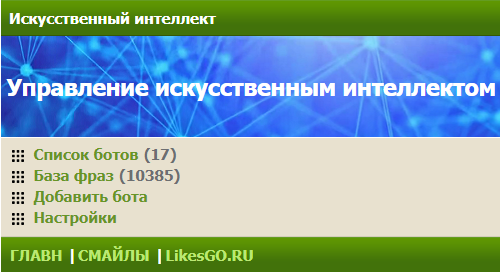 Искусственный интеллект - умеет перемещаться по сайту, писать сообщения разным пользователям, которые в сети, писать статусы, в чате, викторине, гостевой, на форуме. То есть имитировать живого человека..