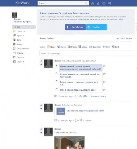 Сделана авторизация через Twitter и Facebook. Приглашение друзей из других соц сетей.