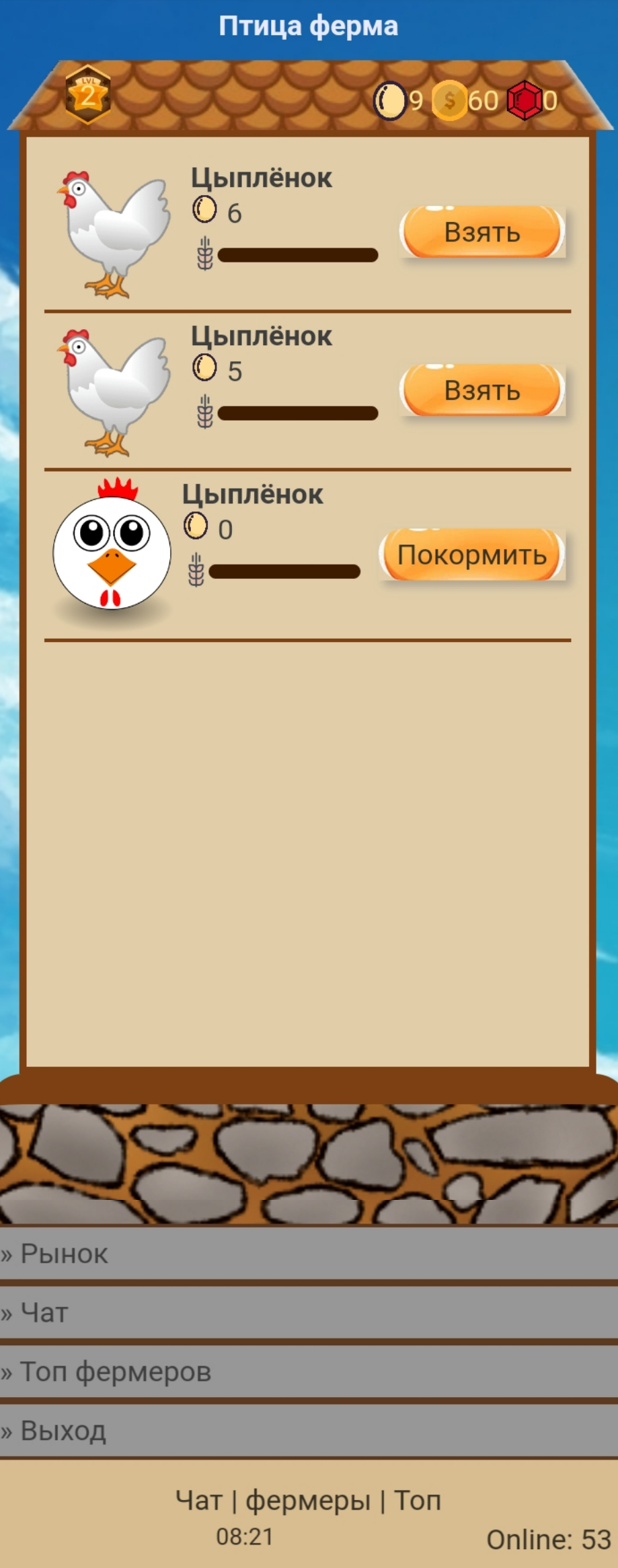 Описание: Это моя первая мини игра самопис, писал эту игру почти с нуля, ядро брал из lbcms так как я не умею писать ядра, функционал в игре таковой вы кормите цыплёнка через 400 единиц еды вырастают в курицу а курица уже даёт яйца, Установка просто как в lbcms движке