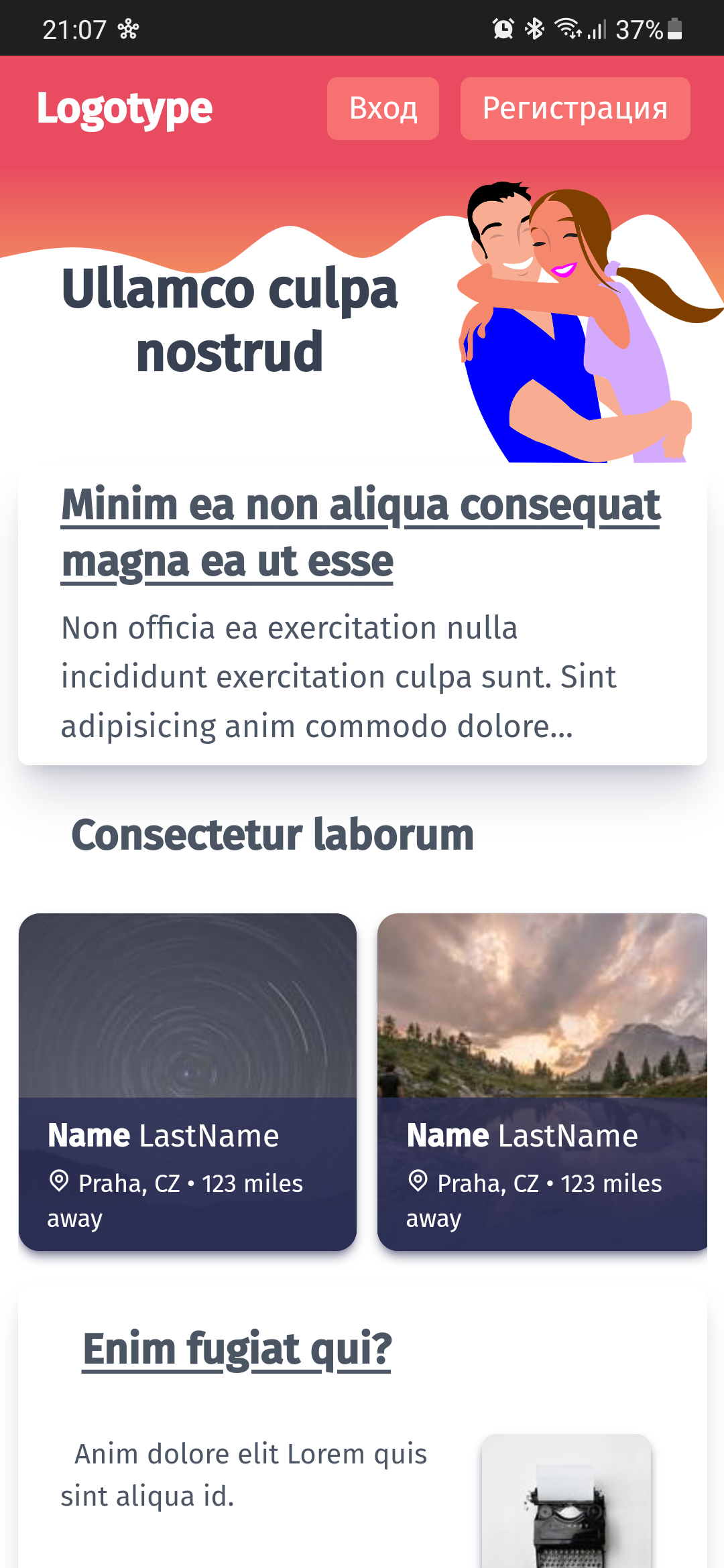 Одна страница + модальное окно.