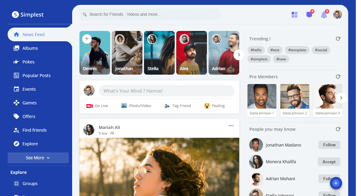 Описание: Адаптивная верстка (настольные компьютеры, планшеты, мобильные устройства) Построен с использованием Uikit 3.4 Вертикальные макеты с меню сворачивания Чистый и плоский дизайн CSS3 Вход в систему, регистрация, страницы с ошибками Группа , включенная страница события Изучение пользователей, страниц, групп включает в себя Профиль , включая профиль группы