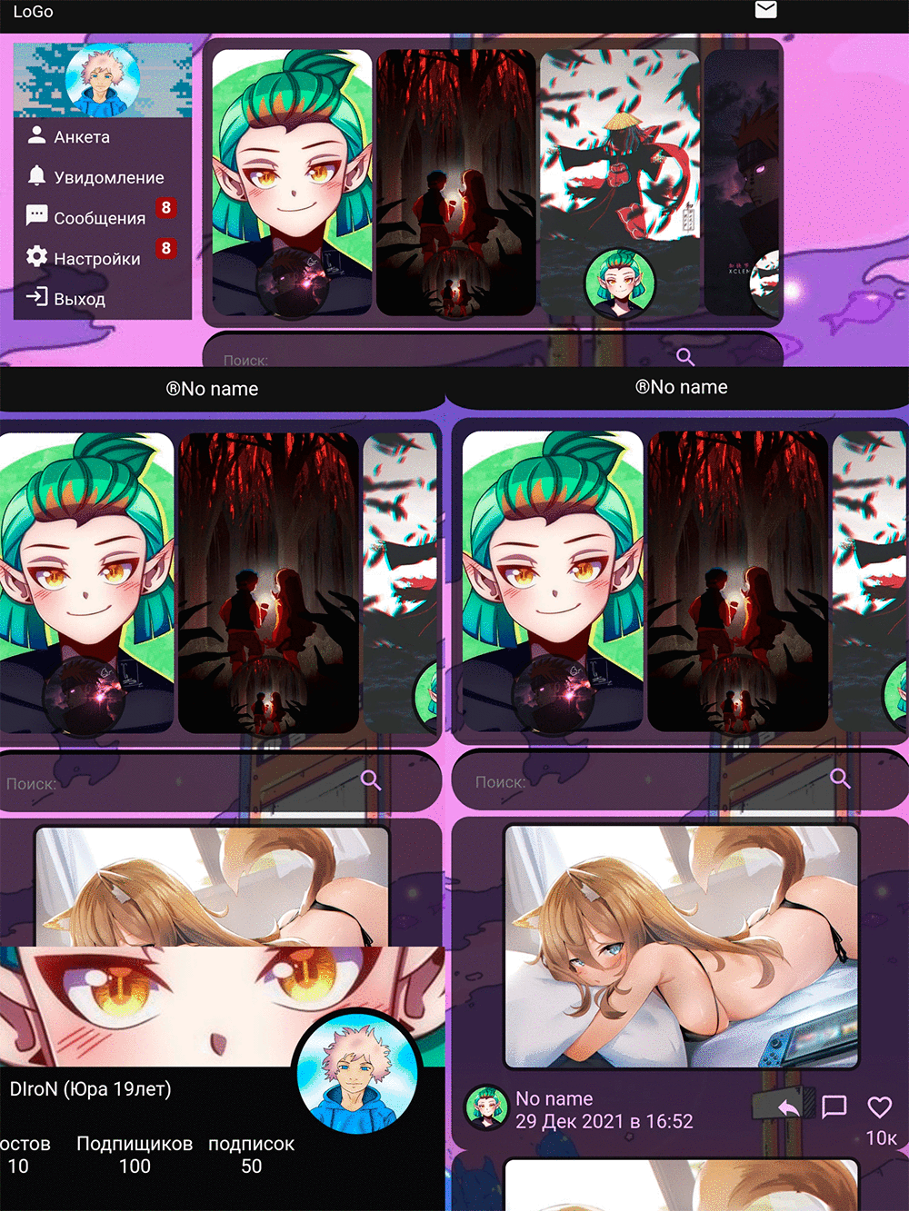 Мобильный шаблон, подойдет для социальной сети.