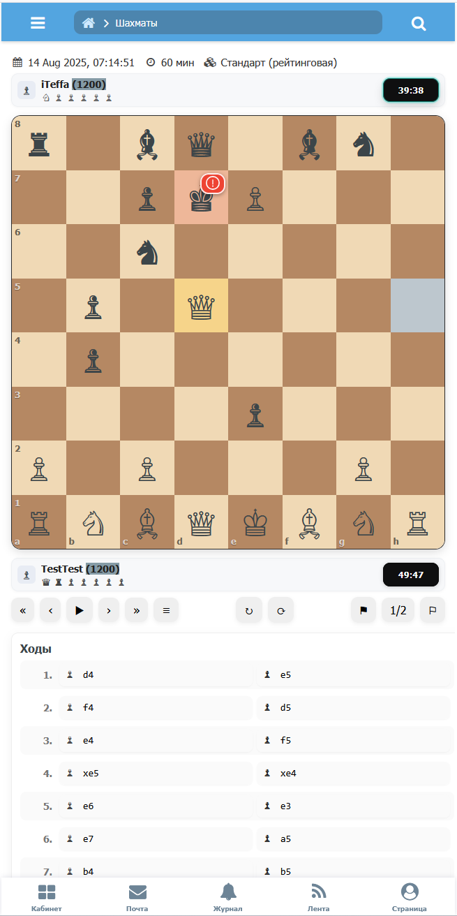 - принятие/отклонение предложения ничьей с соответствующими сообщениями.