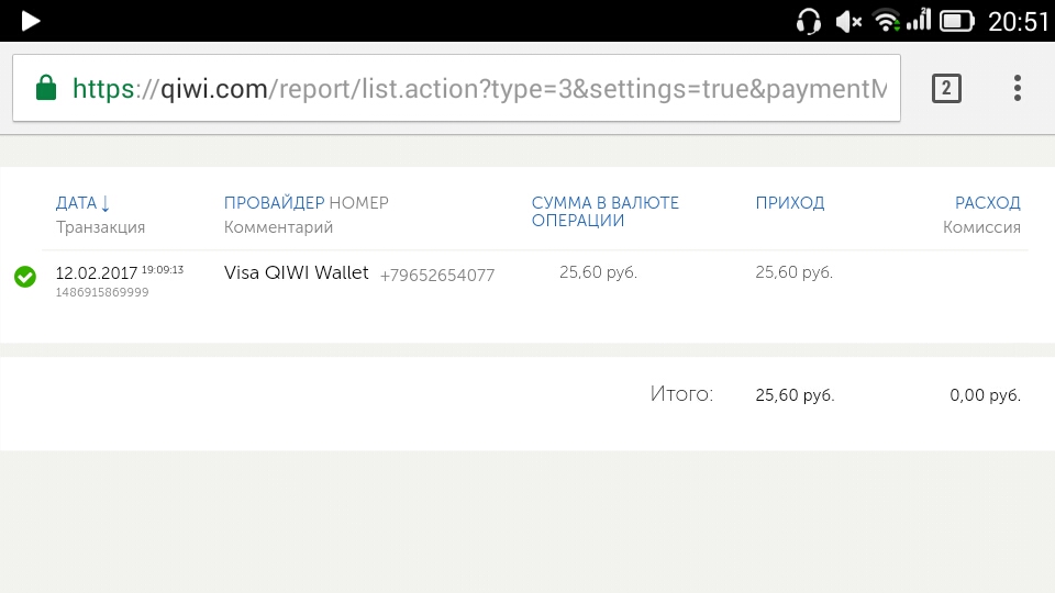 Скрин выплаты.
