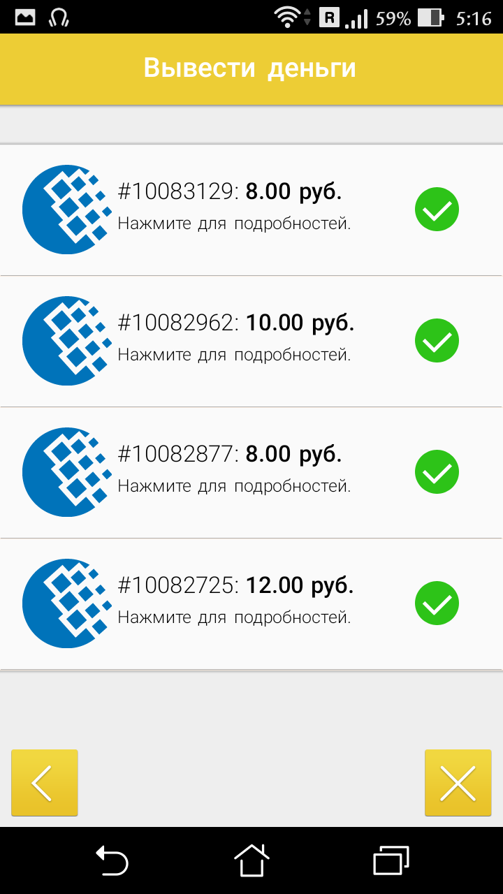 Чет маловато, я когда страдал такой же фигней как ты у меня вывод в месяц был около 100-200р в зависимости от того как часто они дают приложения