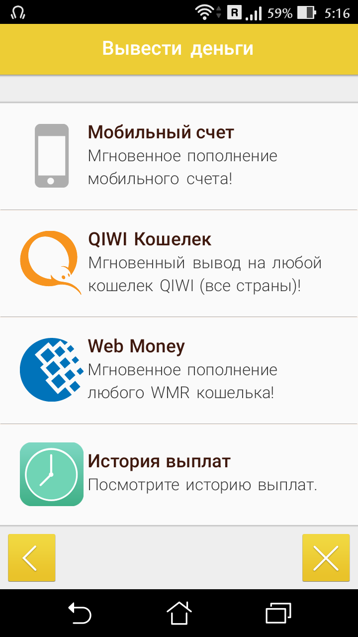 Деньги можно вывести на: Мобильный счет, Qiwi кошелек, Webmoney кошелек (второй скрин), также можете увидеть ИСТОРИЮ ВЫПЛАТ (третий скрин), выполняйте задания и получайте деньги, некоторые задания выполняються очень быстро ;)