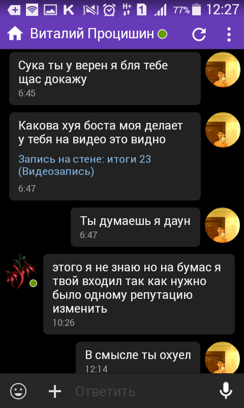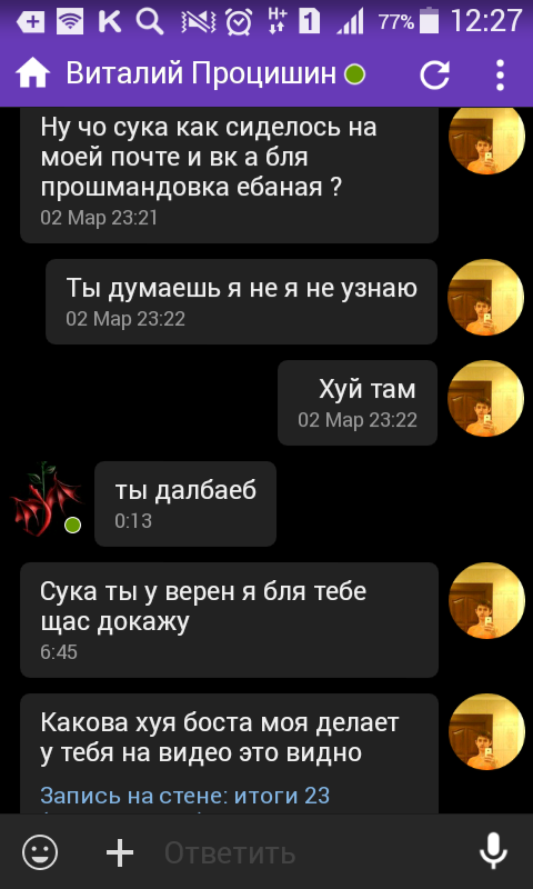 Здравствуйте дорогие игроки у нас появилась крыса в бумасе прошу администрация бумас заблокирывать айпи и перс данные его.он завладел почтой как он узнал пароль я не знаю как он узнал его и он hkolbHik не знает, он читал все переписки контролирывал вк и другое пользователя hkolbHik он прощит прощение за тем кому но не ставил минусы а ставил ник Vitos прошу всезэх неравнодушеных кинуть ему минусы