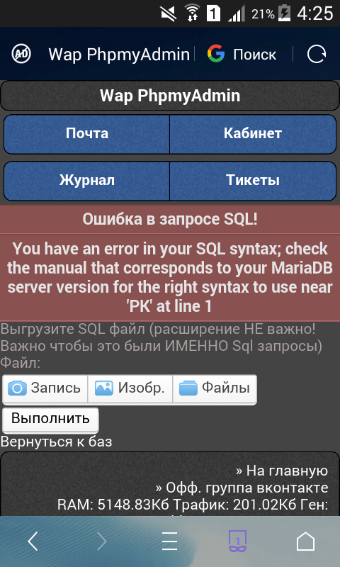 Нарушен синтаксис SQL базы.