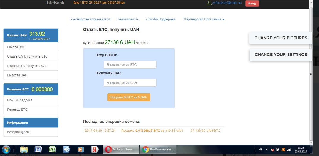вывел на биткоин счет.