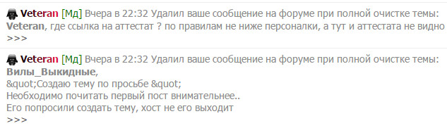 Если же его тема, то с чего он ее чистит от вопросов которые ему не нравятся, и он на них так и не дал ответа за неделю с лишним? Что раз модератор можно чистить свою тему с вопросами неугодными?