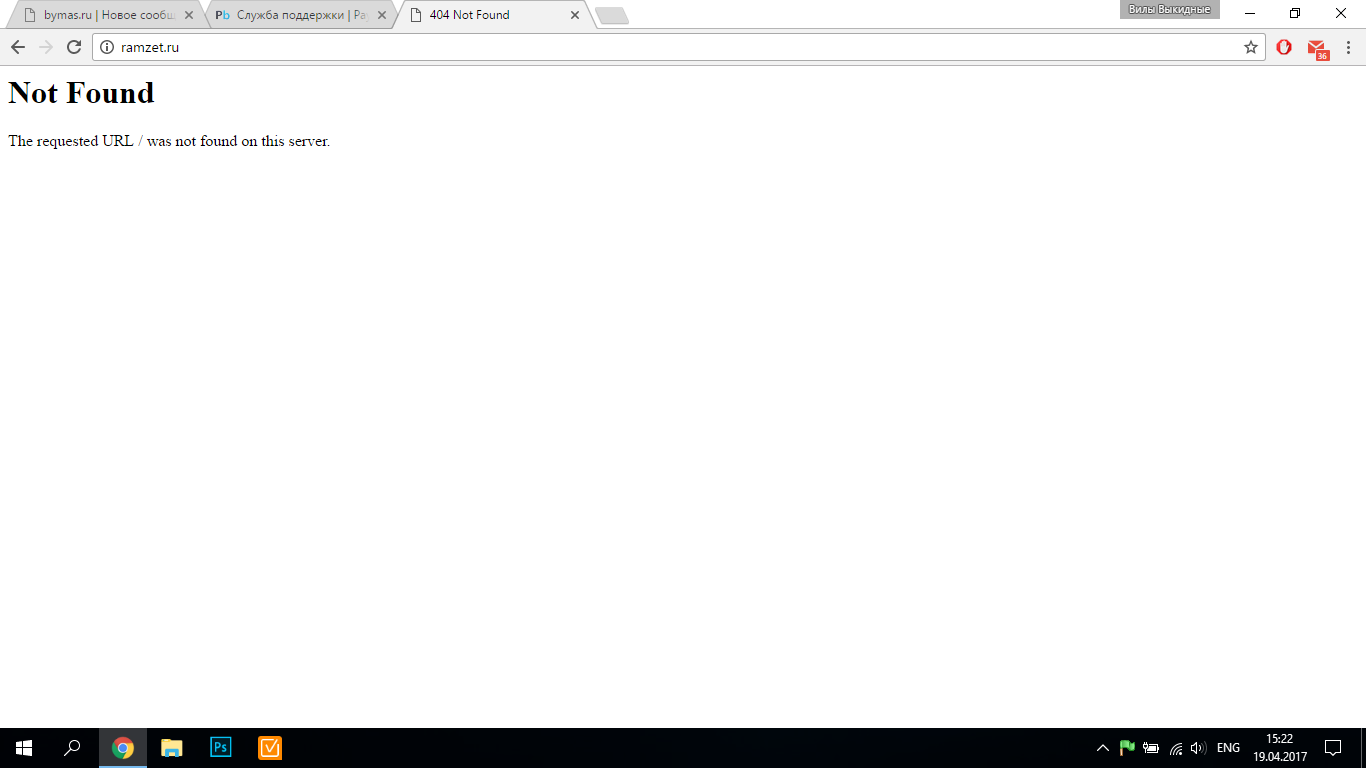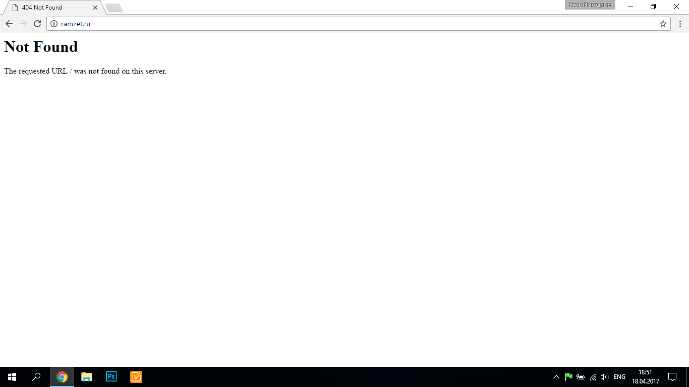 404 ошибка - страница не найдена, хост есть, сайта нет
