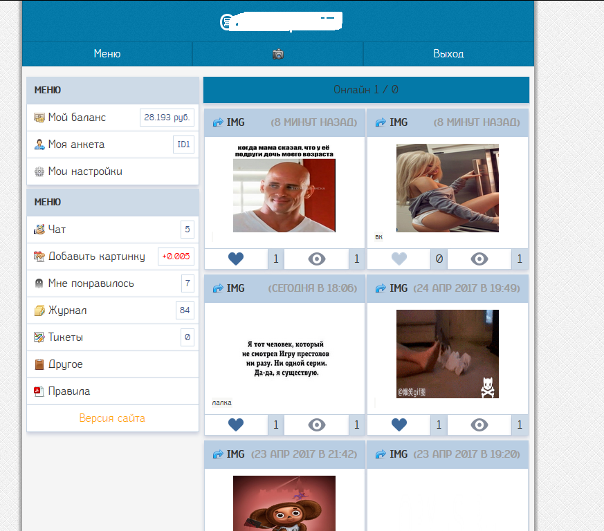 В общем после рекламной сети (ибо тогда уходил в армию) решил написать годноту которой нет в интеренете )) в общем данный сайт позволяет зарабатывать на изображениях (существует импорт и загрузка с пк/телефона) есть самые нужные функции)) Пока плачу не так много ибо я не миллиардер )) Вы выкладываете и вам за это платят/вам поставили лайк на изображение и мы вам за это заплатим/вашу пикчу глянули и мы вам за это тоже заплатим/пригласили человека ? Не беда и тут мы тоже вам за это заплатим)) Вывод куда угодно )) вебмани телефон киви яндекс деньги. Все прозрачно как некогда)) куча всяких функций)) веб дизай(вообще он адаптивный) ,тикеты,топы,анкета,стата,чат и куча всякого дерьма )) не чего лишнего)) пока кину пару скринов )) Сразу говорю накрутить не чего не получиться ибо не школьник программист