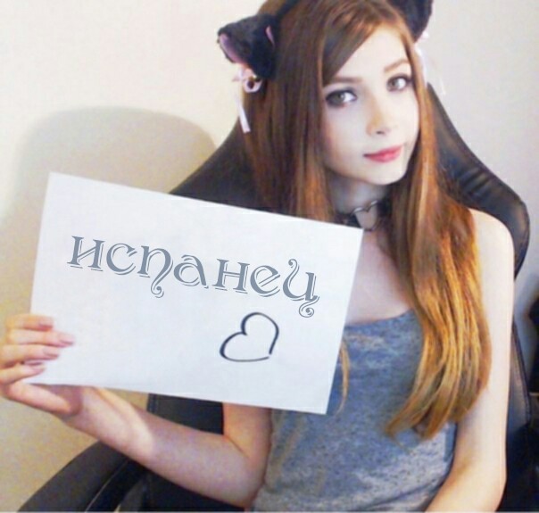 Ребьята можете найти фото девушки и сделать чтоб в руках был листик а на нем написано Испанец