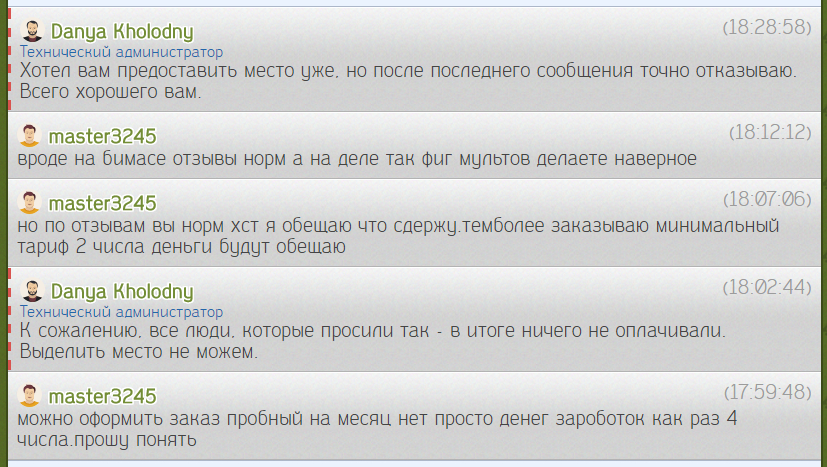 так же подержу даню тоже выдавал место ему говорил типо 1 месяц бесплатно потом будет плотить и слился так что будьте бдительны