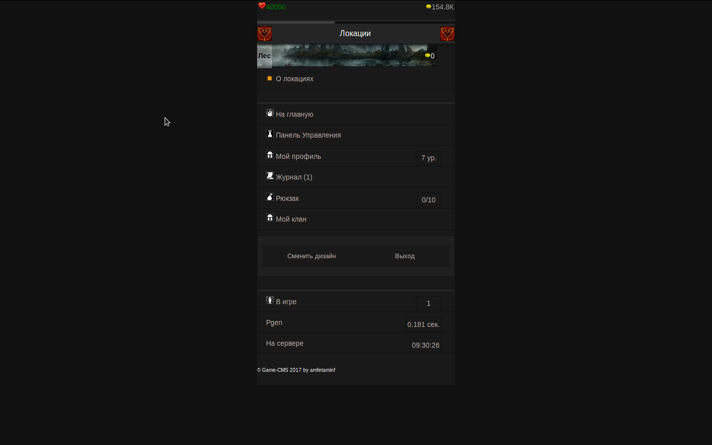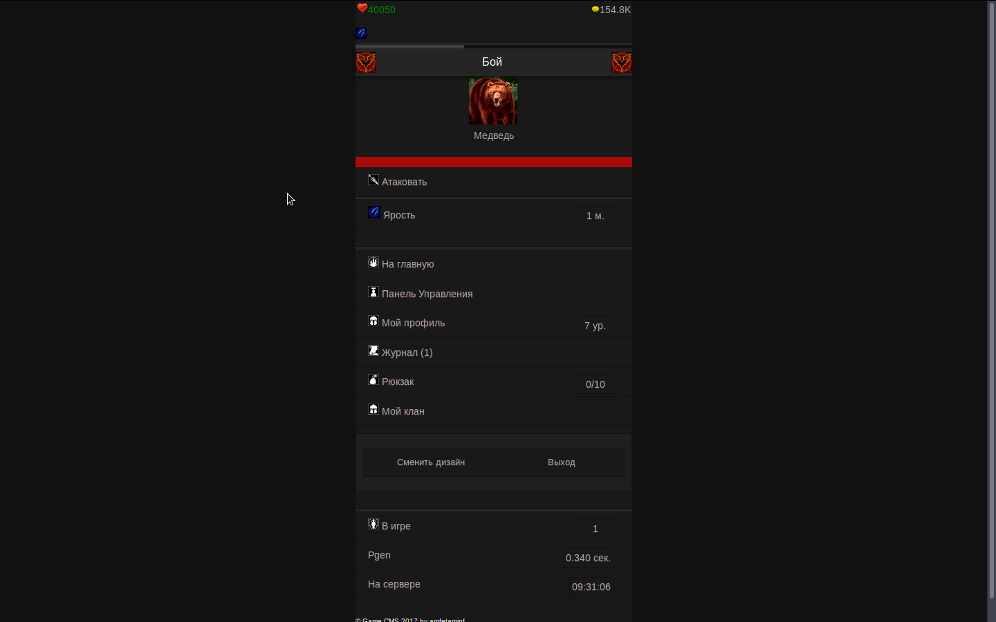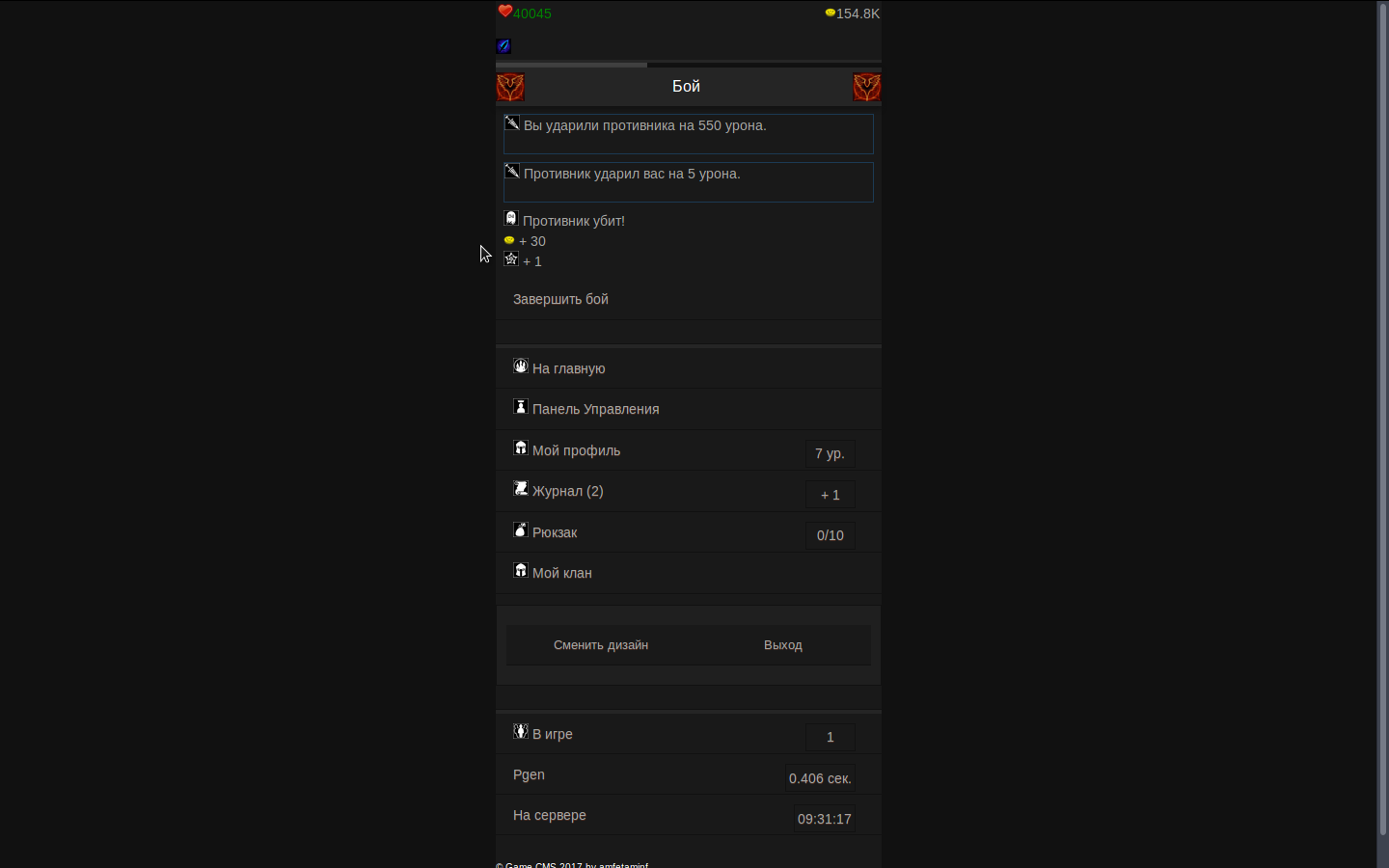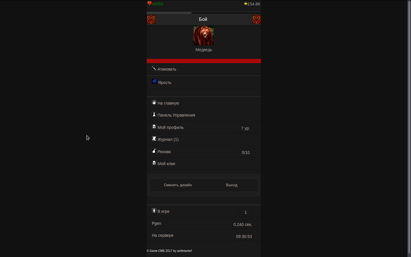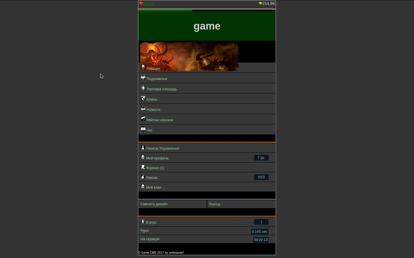 Всем доброго времени суток. Прошу оценить игру по 10-ти бальной шкале(Желательно с описанием причины такой оценки). На данный момент уже много написано и в скором времени планируется релиз. Игра написана на движке Game-CMS v2.0.