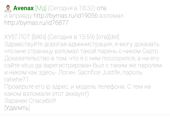 Если был и вправду взлом, то уберите ему мой минус за матерный никнейм.