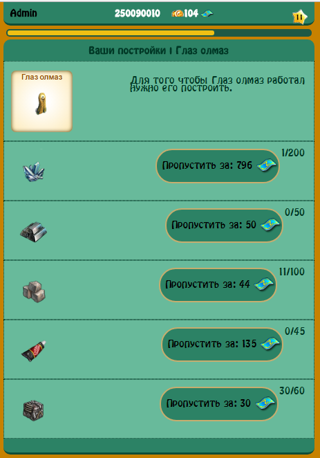 Тут нам нужно построить постройку, для постройки требуются материалы которые у вас находятся на складе