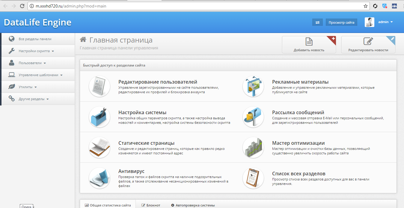 в админки есть и авто обновляемая карта сайта,и полное управления видосами которые парсит в бд,на сайте хранит скриншоты и очень много полезных плюшек!