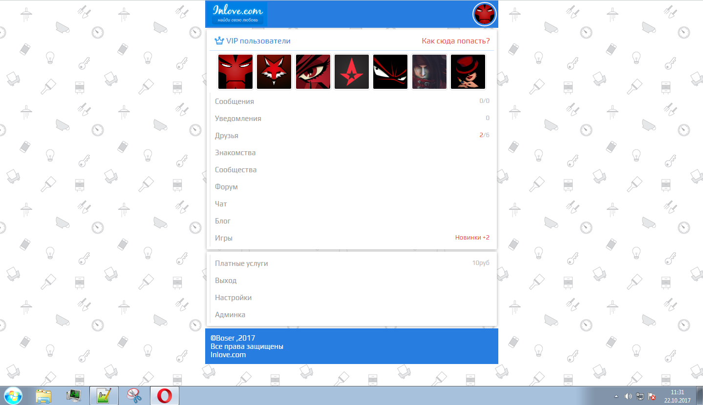 Сейчас начал делать шаблон под социальную сеть(скрин в следующем посте).