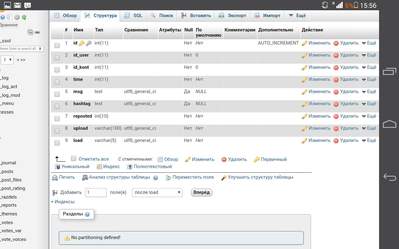 Fatal error: Uncaught exception 'go\DB\Exceptions\Query' with message 'Error SQL "INSERT INTO `user_wall` (id_user, id_kont, time, msg, hashtag, upload, load) VALUES (1, 2, 1509282134, " .зубы. ", "#FIERA", "1eb758fe9ef6fa49283f60fcfe13a77d", ".png")"; error="You have an error in your SQL syntax; check the manual that corresponds to your MySQL server version for the right syntax to use near 'load) VALUES (1, 2, 1509282134, " .зубы. ", "#FIERA", "1eb758fe9ef6fa49283f' at line 1" [#1064]' in