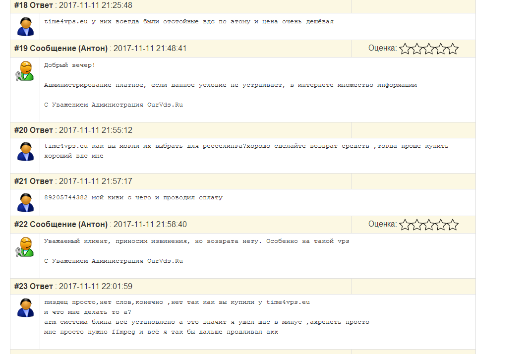 административоние платное это понятно но мля как можно толкнуть рессилинг аккаунт с не рабочими репозиториями?хотя пох на это самому сделать можно ,но на запрос возрат средств сказали нет,это понятно потому что у ресселира взяли ,короче не берите вдс у них,а если хотите то берите сразу у time4vps.eu на сколько проверил они за косяки не берут плату а делают в отличии ourvds