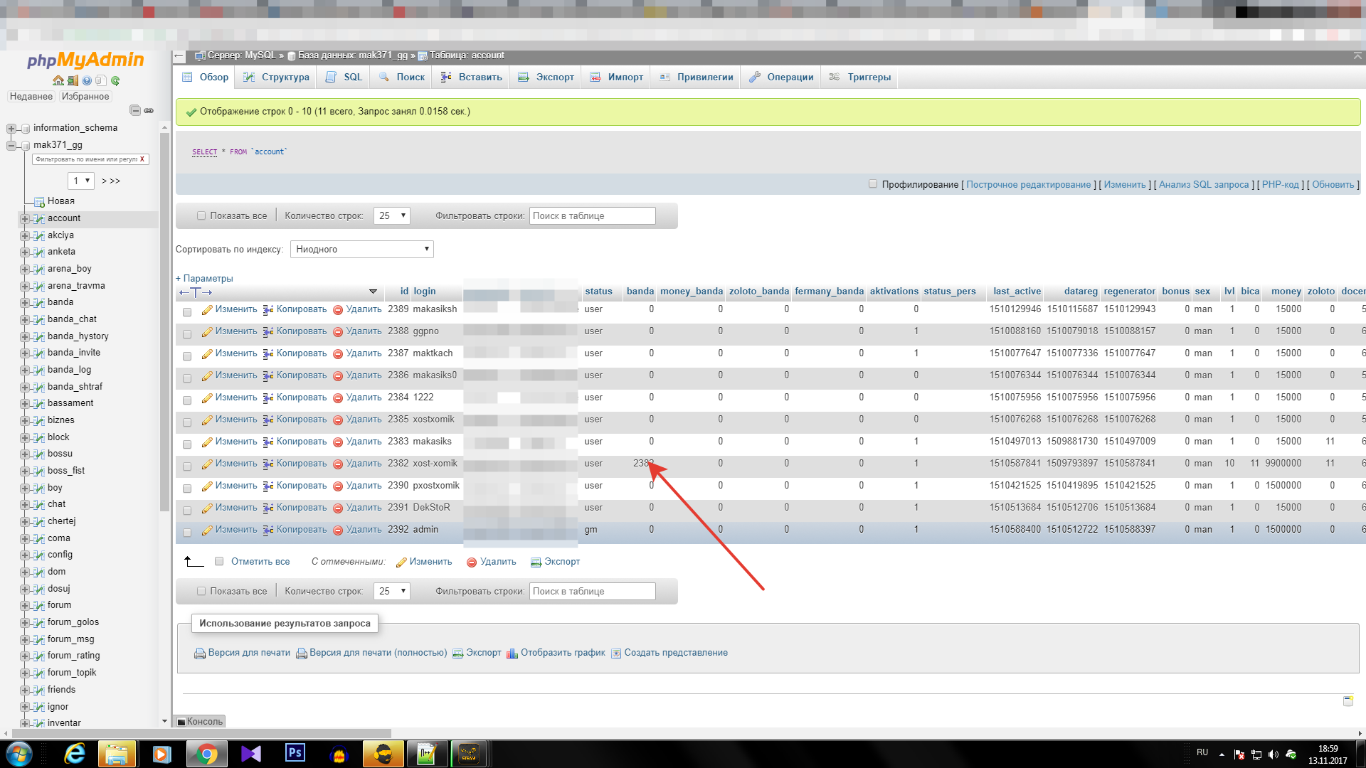 в самой таблице nick есть данные банды мы сравниваем но оно не выводиться
