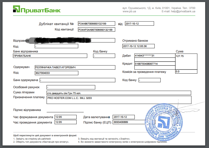 Mobiaaa , нашел квитанцию где я оплачивал хостинг через приват24 там есть ИФО админа,но как их найти?!