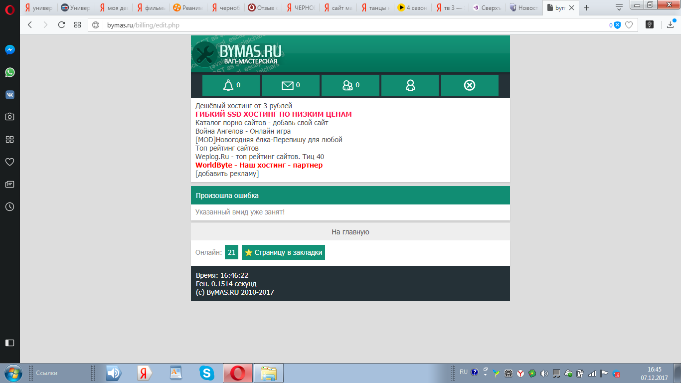 • Хостинг (от 3 рублeй в день)