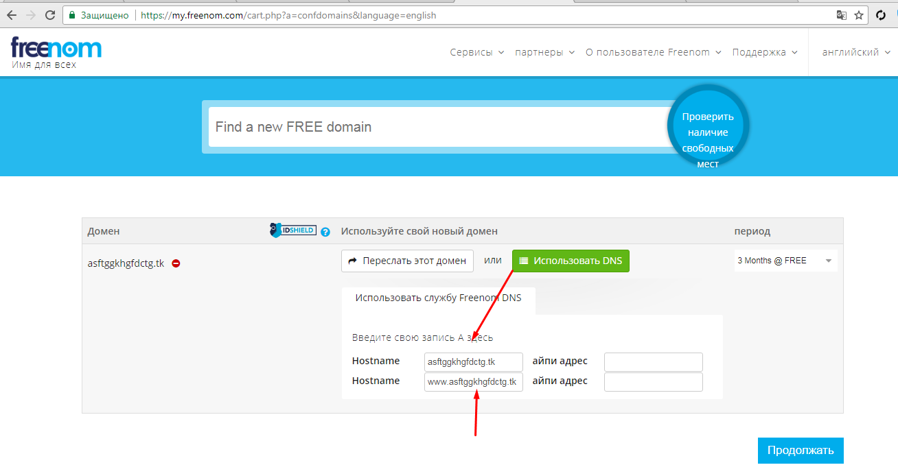 Как рега бесплатный домен tk