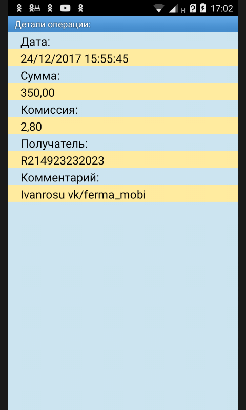 Карочи скрин перевода средств на его кошь скину ниже