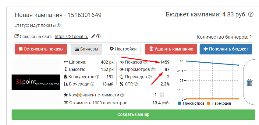 Я как пол часа запустил назад,я так понял дело в банерах,чем понятней он тем больше переходов ,ща другой банер попробую