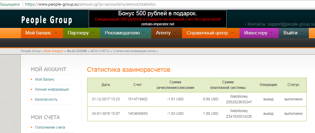 я там не работал 1 долор заработал за пару дней потом перешел на тизеры,у меня тогда был кино сайт и я был в поисках партнерки! ну как я эту поставил то на эмоциях начал приглашать рефералов,после того как я нашел другую партнерку и понял что там больше можно заработать то эту бросил! А второй долор через год накапало на пару рефералов что там были и есть! возможно еще к той партнерки вернусь нужно затестить ее на накрутку и на слив трафика и т.д!