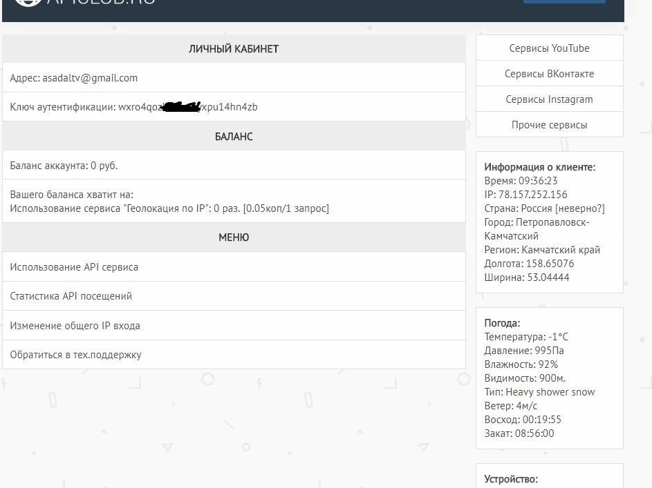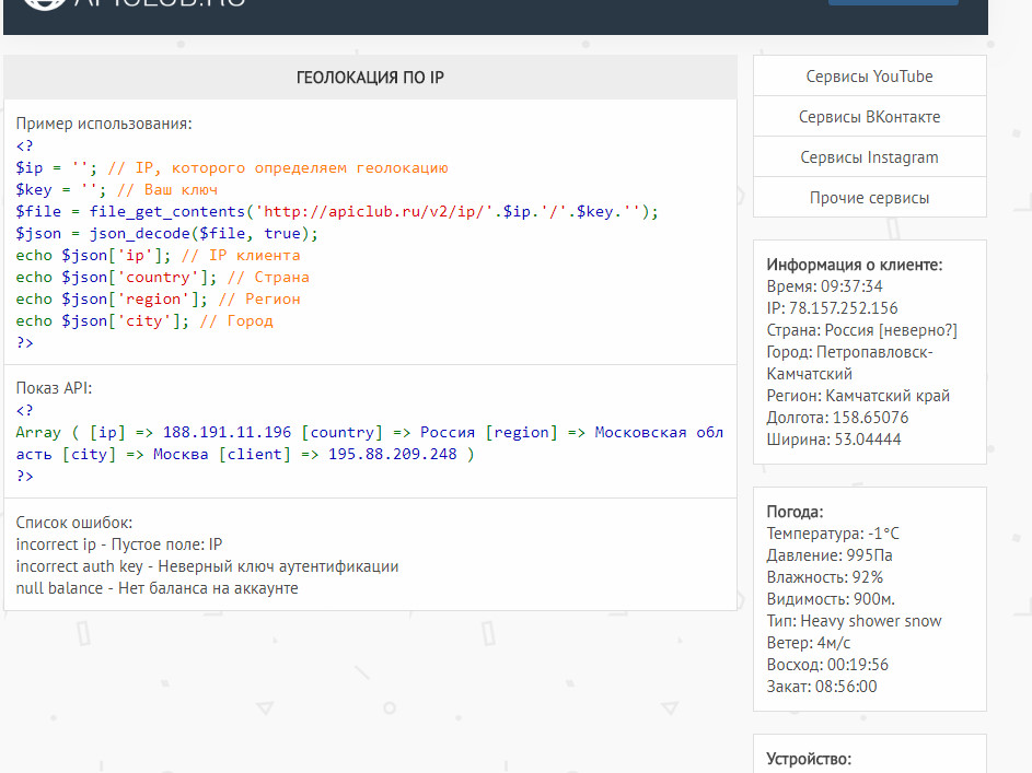Пока только малая часть API документации (Геолокация по IP). Позже сделаю её больше.
