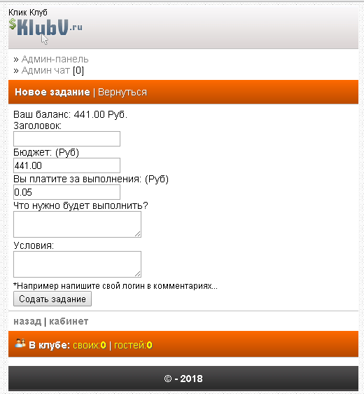 Человек создает задание. указывает бюджет, и кол-во единиц для оплаты за одно выполненое задание! после чего задание отправляется на модерацию, и подтверждается!