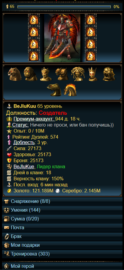 Профиль игрока, тоже схож