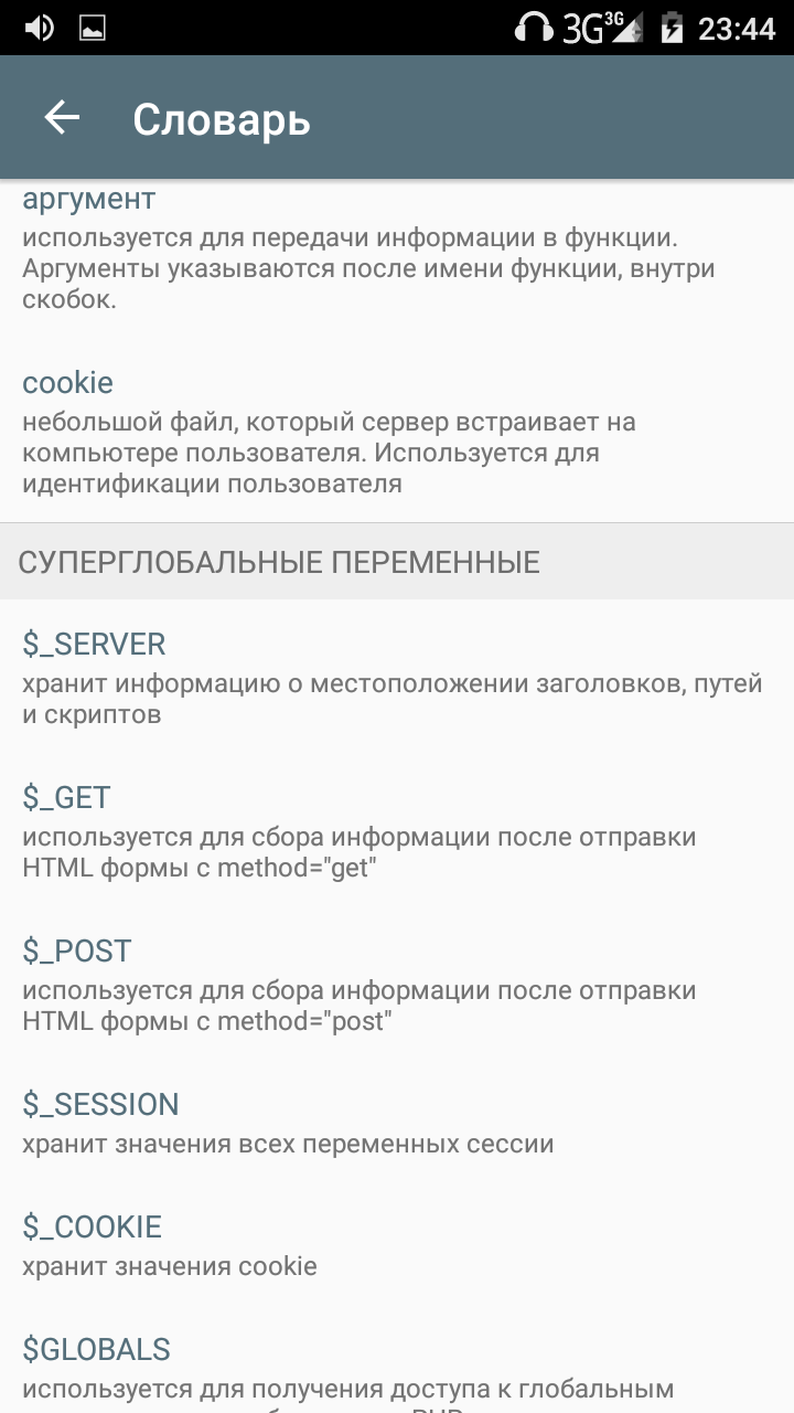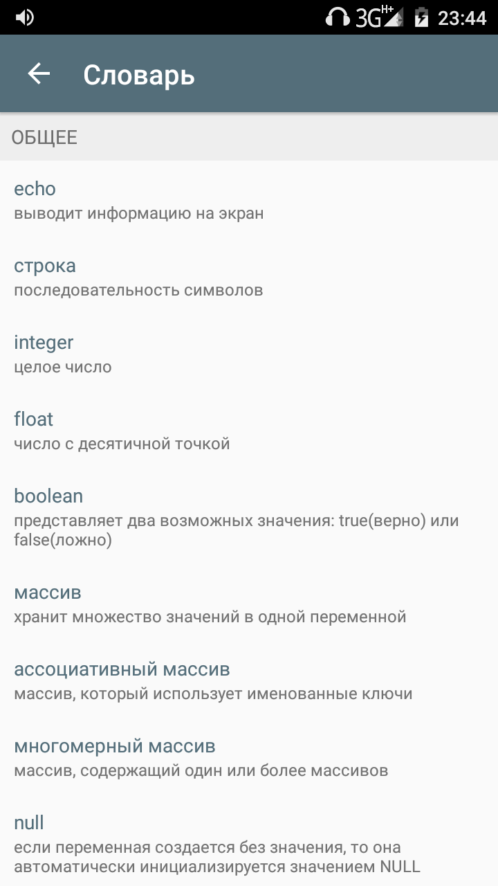 | Словарь php